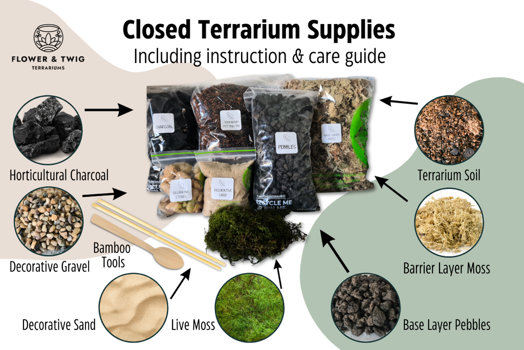 🌿You can choose your own plants! Flower and Twig can choose the plants for your kit - or if you prefer, you can choose your terrarium plants from what we currently have in stock here.